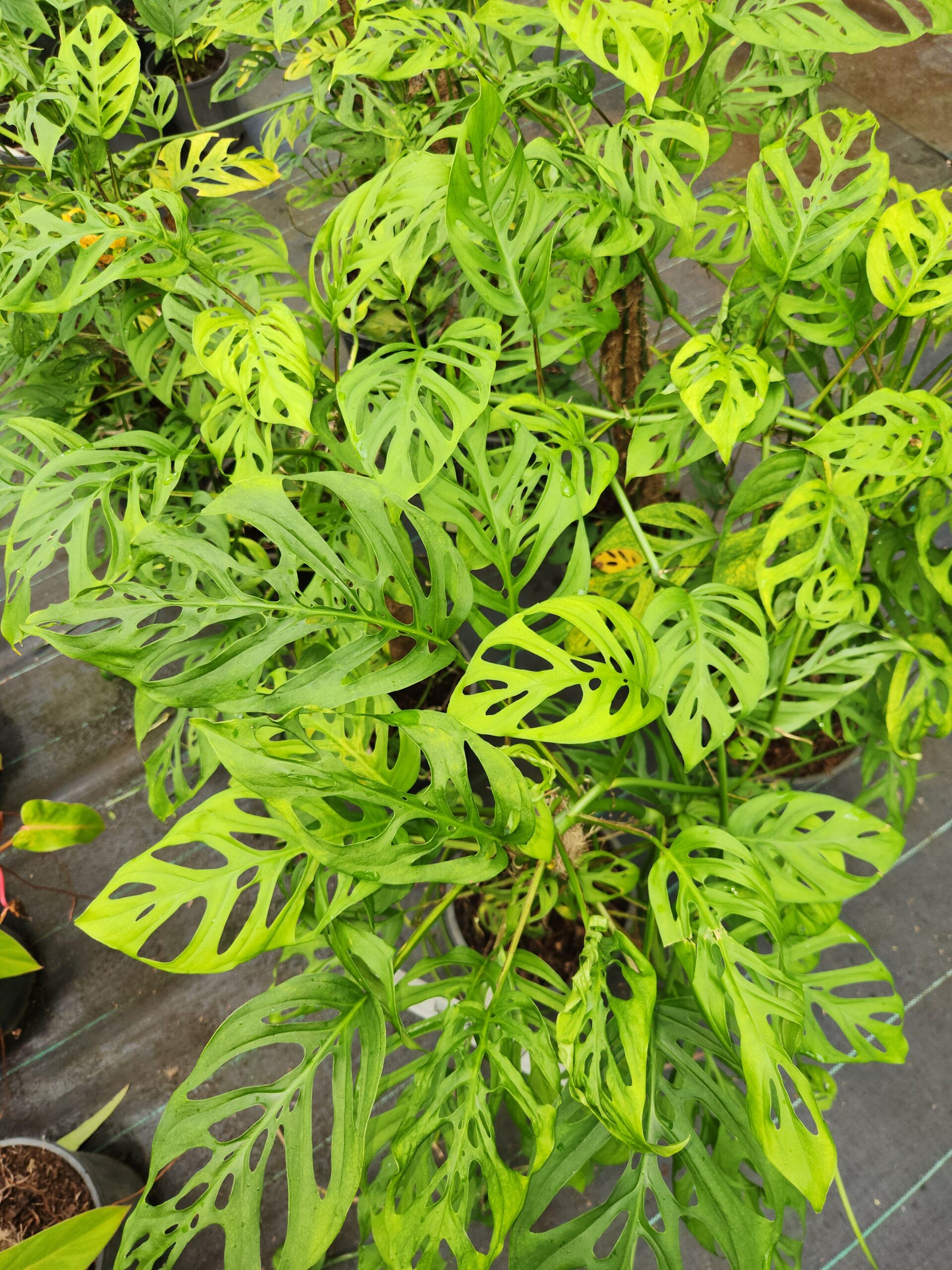 This rare plant has exceptional large leaves and prominent fenestrations. While its leaves resemble those of the usual Swiss Cheese plant when young they differ significantly in size and thickness.